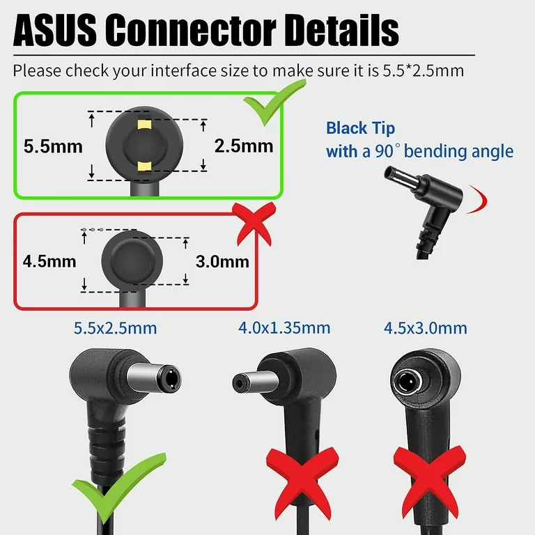 • Asus Laptop charger Adapter For Asus 19V 3.42A With ( 65W ) 5.5*2.5 mm for ASUS K42 K52 K52F K53E X452E F552L Power Supply Charger