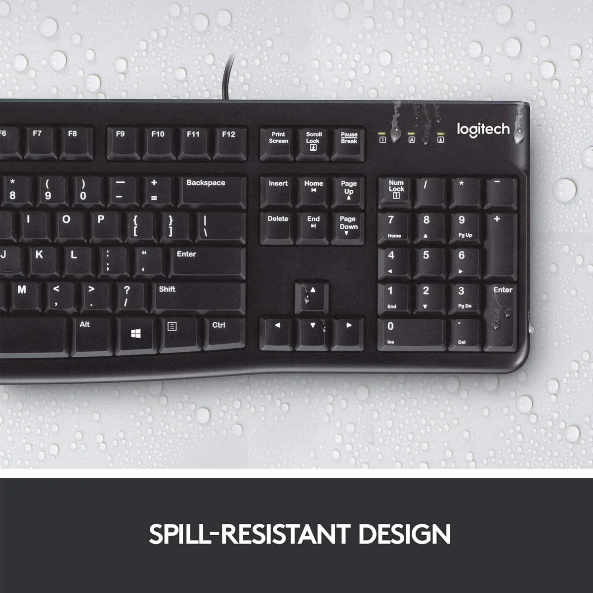 Logitech K120 Corded USB Keyboard with Spill Resistant Design – Black