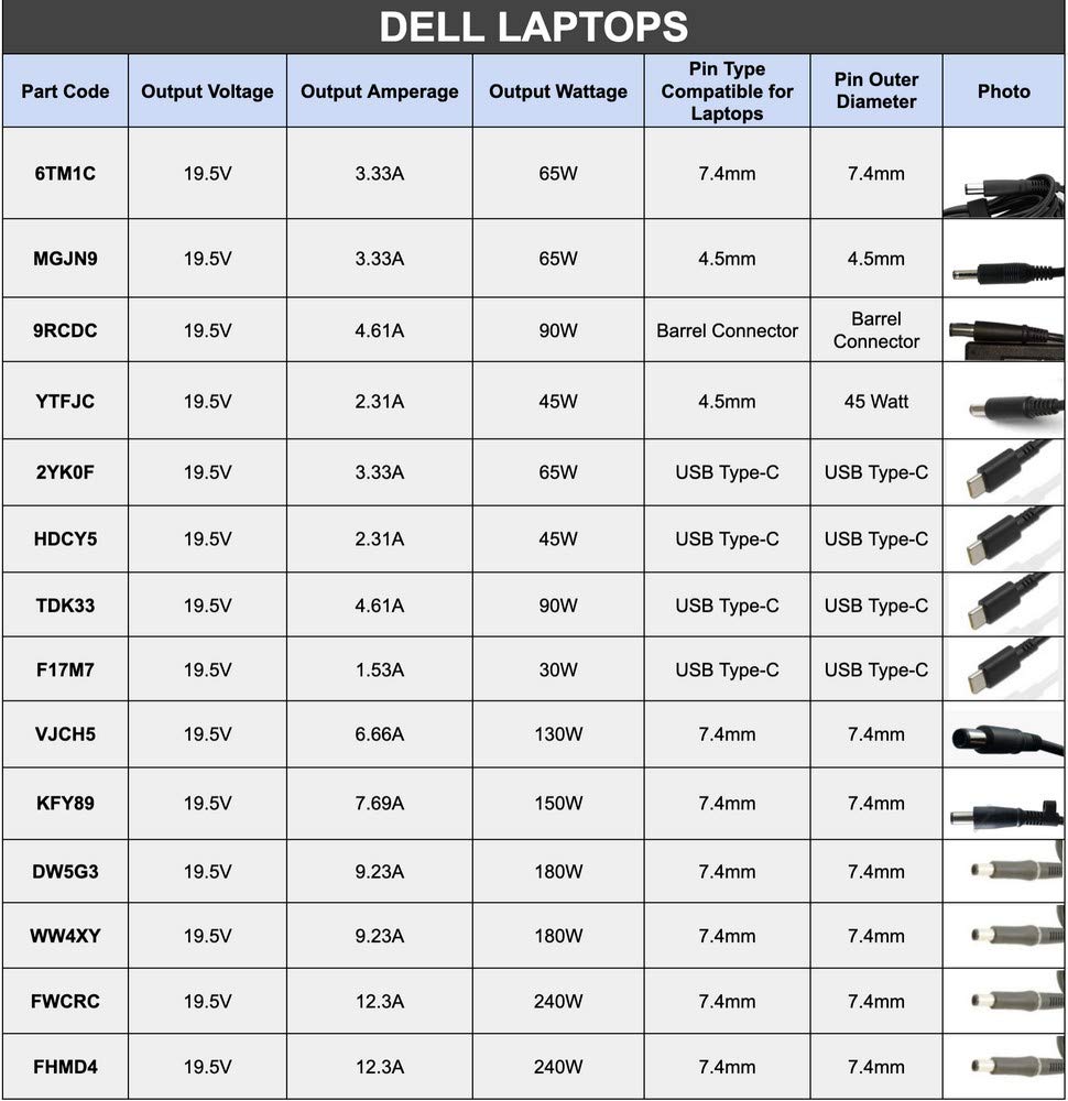 Power Capacity : 130 Watt 19.5 voltage; Current: 6.7 amps