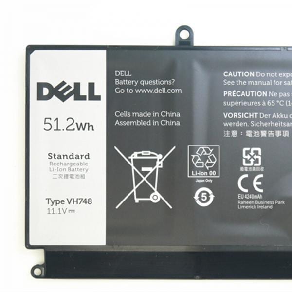 Item Model: VH748; Product Type: Replacement battery; Battery Type: Li-ion; Number of Cells: – 3 Cell; Voltage: 11.1V; Capacity: 51.2Wh; Battery Life: Up to 500 recharge cycles over the life of the battery. Compatible – Battery Code: VH748 Compatible Laptop Models: Dell Inspiron 14 5439 Series; Vostro 5460 5470 5560 Series (see description Fit Laptop Models).Warranty – 6 Month Warranty form WMart.