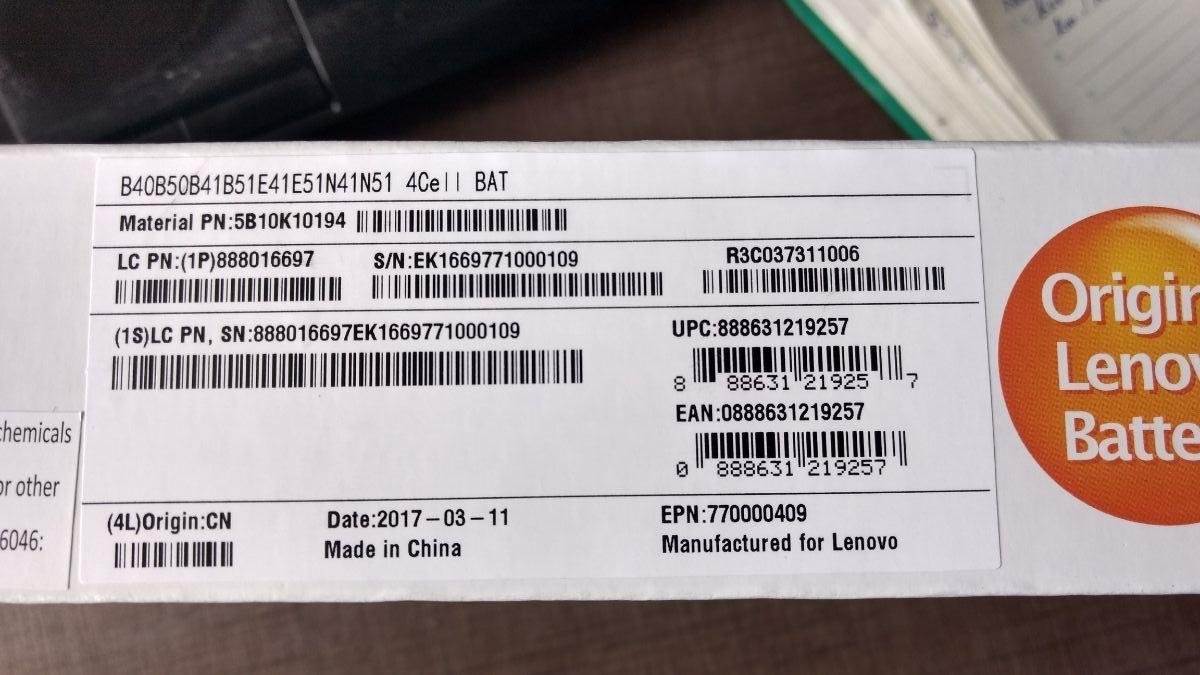Lenovo 888016697 4 Cell Laptop Battery (Black)– MPN: Lenovo B40-70